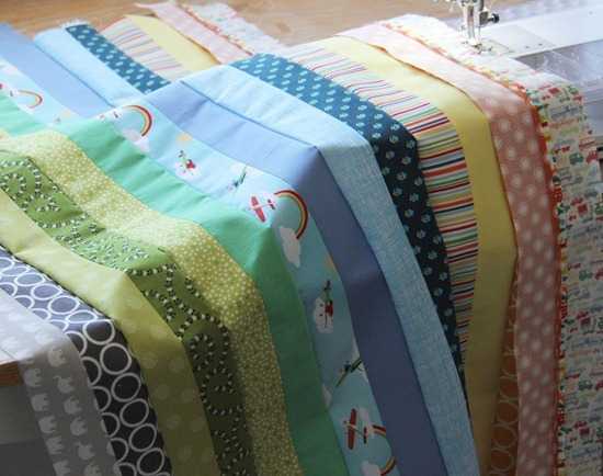 - скроите обтачки для обшивания периметра одеяла и отрез ткани для изнаночной стороны;