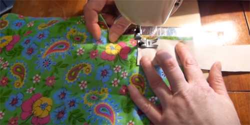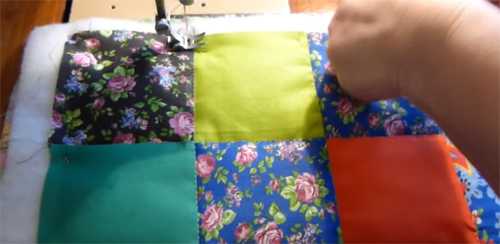 - соедините синтепон с изнаночной тканью и простегайте эти два полотна на машинке, образовывая квадраты из машинных строчек;