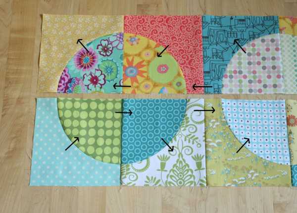 - пришиваете один фрагмент, прикладываете к нему следующий и соединяете их между собой;