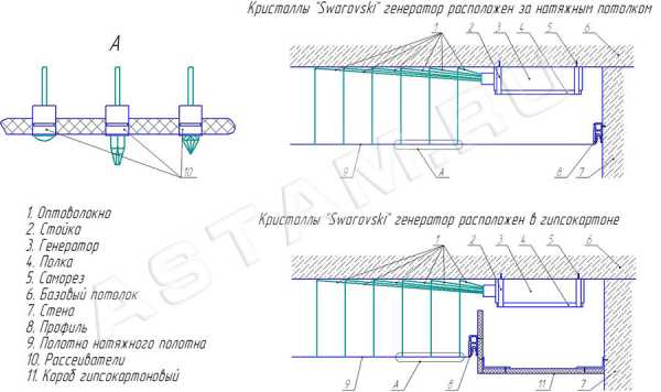 Схема установки потолка звездное небо с кристаллами Сваровски