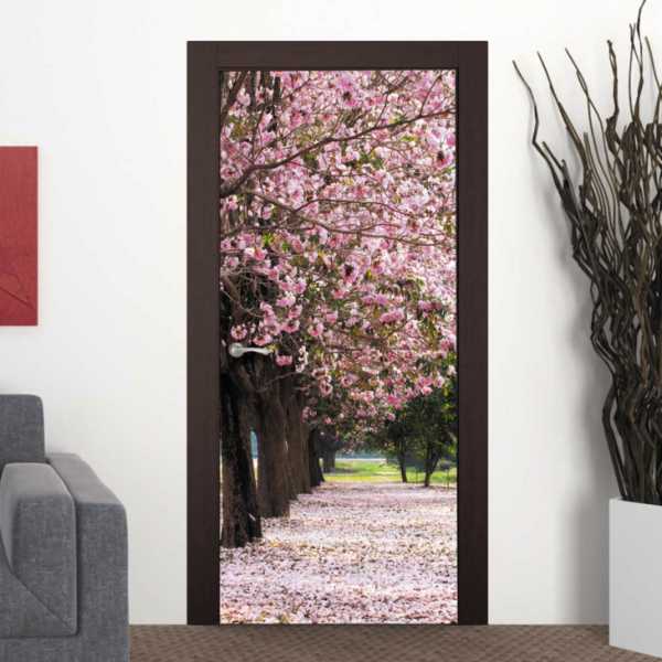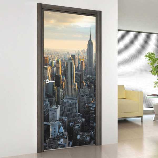Межкомнатные двери можно декорировать бумажными фотообоями, используя обычный клей, или съемные виниловые наклейки. Чтобы оформить обыкновенные межкомнатные двери, обычно используют стандартные полотна фотообоев размером 86х220 см. Особой популярностью пользуются полотна, на которых изображены живописные пейзажи, горы, городские ландшафты, увеличивающаяся панорамная перспектива.