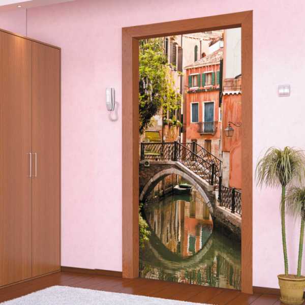 Для того, чтобы поклеить фотообои на дверь своими руками, обычно выбирают цельное полотно на клеевой основе.