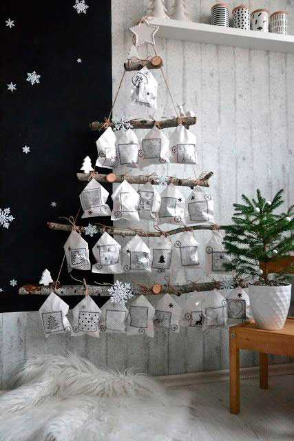 6. Прищепки и бумага — этого достаточно, чтобы создать простенький адвент-календарь, которые все равно порадует малыша. Задания или подарки можно запаковать в конверты или в форме звезд. Прищепки можно не только повесить на красочные ленты, но и закрепить клеем на картоне, чтобы получилось интересней.