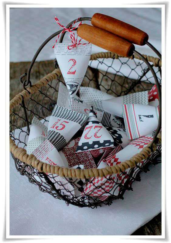 Когда стаканчики будут созданы и пронумерованы, их можно повесить на гирлянду и закрепить прищепками. Выглядит очень нарядно и празднично, а внутри достаточно места для хорошего подарка.