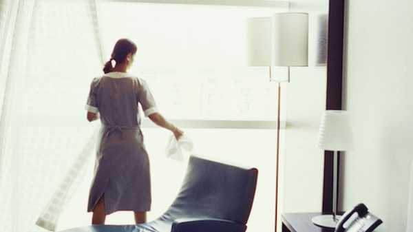 Мария Стикни, менеджер по уборке в отеле Radisson Blu Mall в Блумингтоне, предпочитает сначала вынести мусор и грязное белье из номера, чтобы затем начать уборку с чистого листа. Она убирает весь мусор в мешки, собирает постельное белье, полотенца и все, что оставили в номере клиенты. В ванной комнате она сразу собирает бутылочки с косметикой и все, что стоит на туалетном столике или на полке. «Это помогает бороться с соблазном просто вытереть пыль вокруг этих предметов и снова поместить их обратно на мокрую поверхность, что может оставить мокрые следы,» ‒ говорит она.