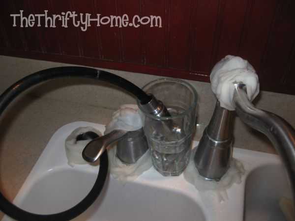 Если минеральные отложения, остающиеся от жесткой воды, загрязнили ваш кран, не пытайтесь отчистить их с помощью жестких щеток. Они могут оставить царапины на хромированной поверхности. Вместо этого используйте уксус. Налейте немного уксуса на тряпку и протрите кран. Вам не придется прикладывать усилий, чтобы ваш кран снова засиял.