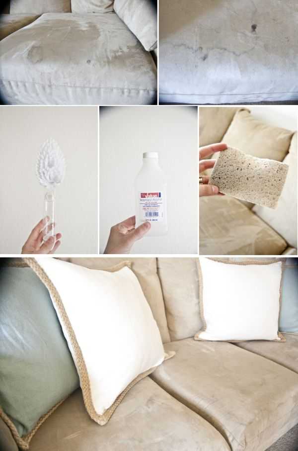 Удалить пятна с дивана поможет чистая белая щетка с небольшим количеством спирта. А чтобы избавиться от неприятного запаха, добавьте щепотку пищевой соды. Все гениальное просто!