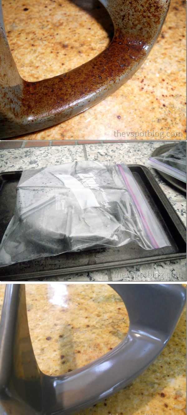 Если не обращать внимание на эти предметы, они в итоге будут выглядеть отвратительно, а ведь о хорошей хозяйке судят именно по состоянию кухонных приборов. На самом деле вам не потребуется особых усилий, чтобы избежать этого. Залейте горелки небольшим количеством аммиака и укутайте в полиэтилен. В таком состоянии они должны провести целую ночь, после чего достаточно будет протереть их сухой тряпочкой.