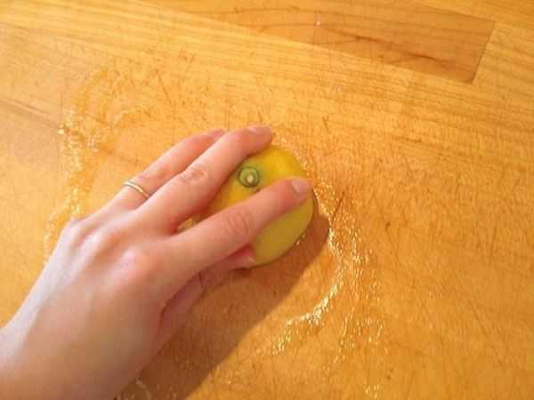 Обычно в трещинках деревянных досок для разделки скапливаются частички пищи, которые необходимо периодически удалять. Для этого лучше всего протереть их уксусным раствором, затем половинкой цитруса и морской солью и под конец мокрой салфеткой. Особый эффект обеспечит также полотенце, смоченное в минеральном масле.