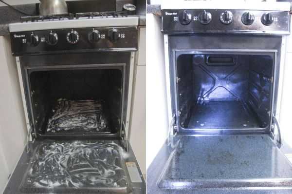 Начать мытьё духовки лучше с удаления мусора деревянной лопаточкой, затем обсыпать её пищевой содой и опрыскать уксусом. Через двадцать минут начните протирать её круговыми движениями, напоследок воспользуйтесь влажным полотенцем.