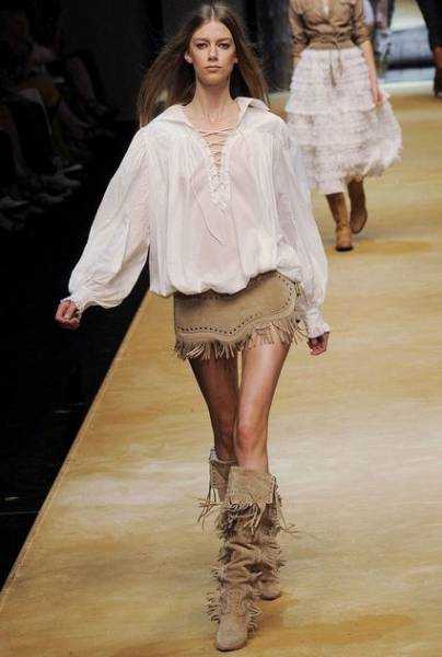 На мировые подиумы стильная одежда попала в далекие семидесятые годы прошедшего столетия. Наряды, напоминающие повседневный гардероб ковбоев, индейцев, золотоискателей, фермеров, характеризуются простыми формами, прямым кроем и функциональным назначением.