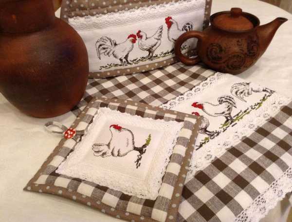 На стулья в кухне также можно положить специальные подушечки под тон скатерти, которые смогут оживить даже самые скучные предметы мебели. Кстати, для кухни лучше купить готовый мебельный гарнитур, включающий в себя стол и набор стульев — так они будут смотреться гармонично.