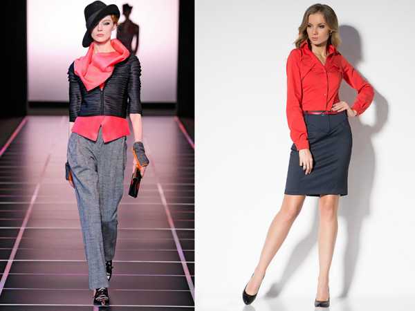 Серый цвет часто используют в одежде для офиса, так как он ассоциируется с серьезностью, деловитостью и умеренностью. Но чтобы немного оживить образ, стоит использовать комбинацию цветов. Беспроигрышным решением станет сочетание серого с белым и черным. Интересные комплекты можно составить, используя вещи серого цвета, но разных оттенков.