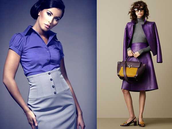 - С фиолетовым. Комбинируя серый с фиолетовым, лучше отдавать предпочтение светлым оттенкам обоих цветов. При использовании темных, образ может получиться слишком мрачным.