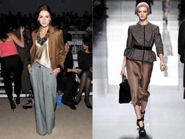 Интересные образы можно создавать в одном цвете. Чтобы не выглядеть «серой мышью», необходимо использовать разные оттенки серого и ткани разных фактур. К примеру, брюки из серой ткани с оттенком металлик дополним пушистым коротким свитером светло-серого цвета. Завершат ансамбль серо-коричневые босоножки и небольшая сумка на ремешке через плечо.