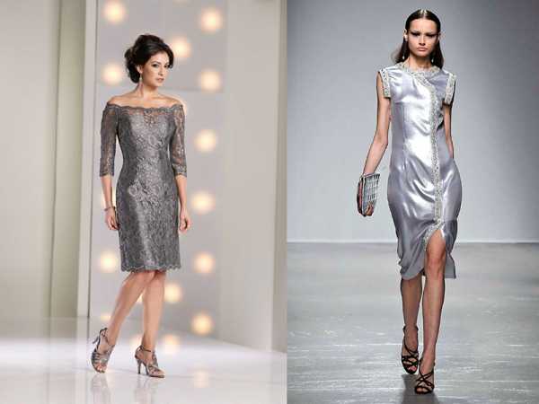 Серый прекрасно подходит и для вечерних туалетов. Серое вечернее платье выглядит благородно и изыскано, особенно, если дополнить его подходящими аксессуарами. Так, платье футляр стального цвета «зазвучит» совсем по-другому, если подобрать к нему босоножки цвета серебра, и использовать украшения в стиле винтаж.