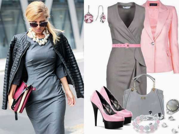 Интересный вечерний образ можно создать, подобрав к серому платью аксессуары цвета фуксии. Можно поступить наоборот: к розовому платью подобрать нарядный серый жакет или болеро.