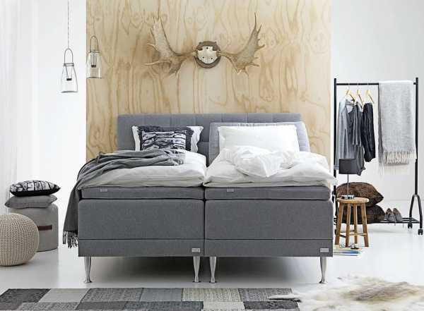 В тандеме «серый + бежевый» нет доминирования ― оттенки растворяются друг в друге. Для усиления эффекта смешивания цвета чередуют: серые подушки кладут на бежевый диван, кровать в серых тонах накрывают покрывалом цвета слоновой кости.