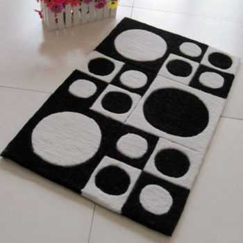 Пример однотонного коврикаЕсли же серый напольный ковер разрисован кругами, квадратами, ромбами, то желательно, чтобы и в других элементах декора наблюдались те же геометрические фигуры. Это дополнит интерьер, сделает его более завершенным.