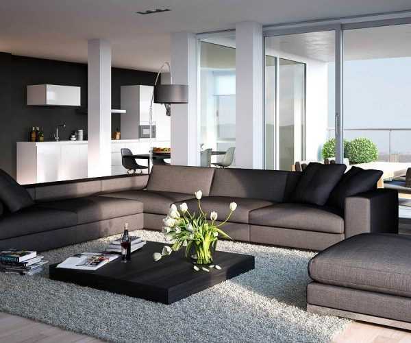 Использование серого современного ковра в интерьере гостиной. варианты дизайна помещений