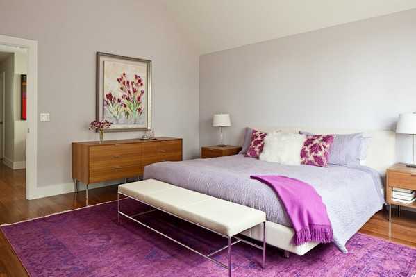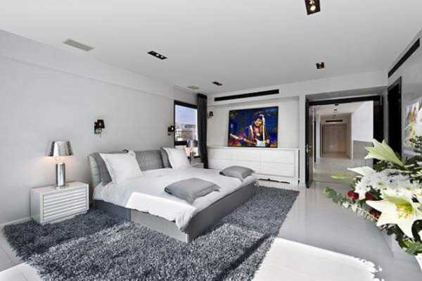 2. Под цвет мебели, но наоборот. Белизну дивана подчеркнет черный ковер, а теплоту бежевой кровати — темно-коричневый. То есть данная схема подразумевает использование ковра, цвет которого прямо противоположен цвету мебели, расположенной рядом с ним.