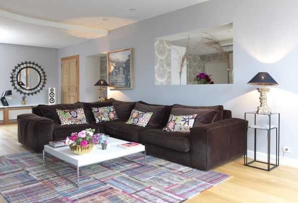 Желательно, конечно, чтобы мебель не сливалась с ковром. Он должен хоть немного выделяться — например, оттенком, фактурой или наличием рисунка.