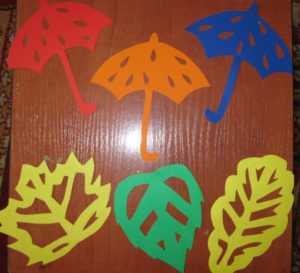 Такая же техника подойдет для других осенних аппликаций. Например, вы можете сделать картину в виде зонтиков и дорисовать листопад.