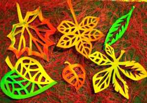 Очень удобно сложить стопкой 5-6 листов и вырезать листочки разом по несколько штук. Правда, с кленовыми порой выходит не очень ровно. Словом, потренируйтесь и найдите оптимальный вариант, так как листочков понадобится много.