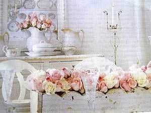 3)в качестве орнамента используются пасторальные мотивы, роднящие шебби-шик со стилем “рококо” – розочки и ангелочки пастельных цветов;
