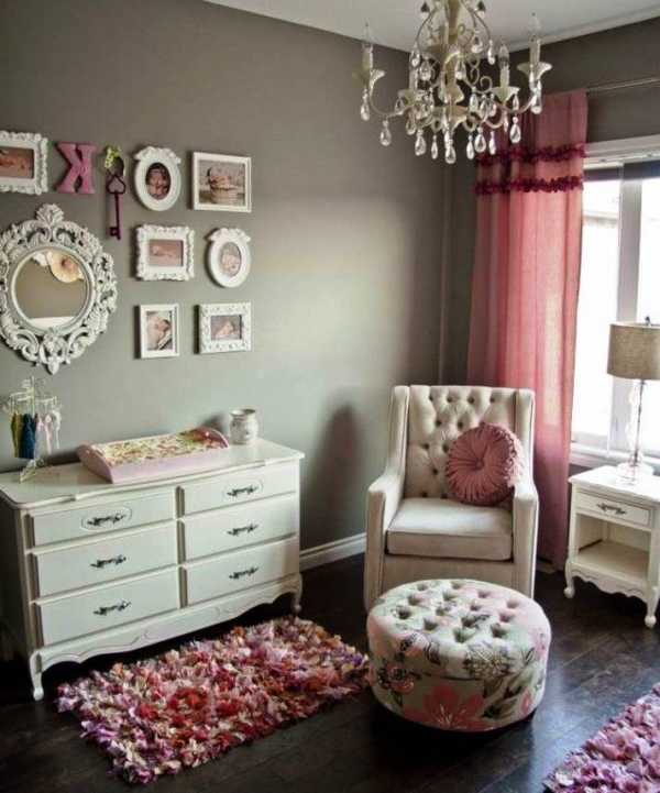 В центре комнаты повесьте хрустальную роскошную люстру. К ней можно подвесить бабочек, ангелочков.