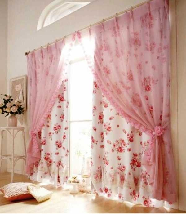 Шторы выполнены из дорогой ткани светлых оттенков. Расцветка может быть однотонной, в полоску, с нарисованными розами и завитками. Современные римские или рулонные шторы не подойдут. А вот шторы в итальянском, французском, австрийском стиле с драпировкой, подхватами и ламбрекеном впишутся идеально в шебби шик, интерьер комнаты от этого только выиграет.