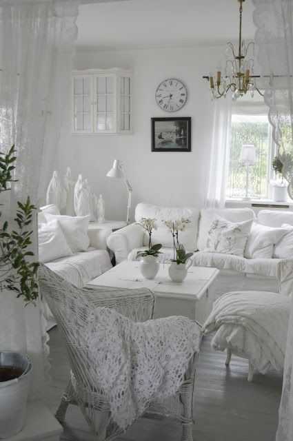 У меня скопилась большая подборка фотографий с интерьерами в стиле шебби-шик. Большая подборка, не побоюсь этого слова, невероятно красивого, белого шебби -шика. Делюсь красотой: