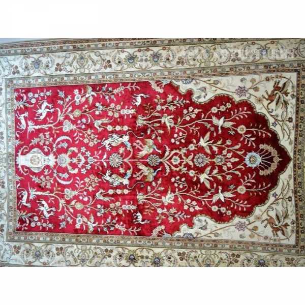 Изменение темных и светлых тонов характерно для шелковых ковров. Глядя на такое изделие с разных сторон, можно увидеть, как меняется цвет фона. Это значительно обогащает цветовую гамму всего ковра. Хотя шелковые ковры очень тонкие – длина ворса не превышает 2 миллиметров – они очень прочные и долговечные. Цвета этих ковров не выцветают со временем, более того, они становятся глубже и богаче. На коврах появляется серебристое или золотое мерцание, что повышает их художественную ценность и делает их высоко оцененными экспертами.