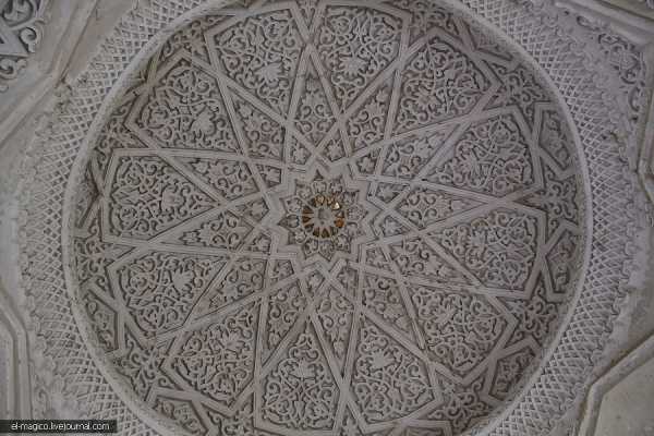 На Самаркандской фабрике шелковых ковров первое потрясение испытываешь, когда заходишь в комнату с коврами. Драгоценные покровы лежат на полу, щедро раскиданные рукой хозяев, в несколько слоев, и сразу же хочется снять обувь или пройти по краю — невозможно наступить пыльной сандалией на красоту. Но мастер-гид говорит, что по коврам надо ходить, это им (коврам!) необходимо. Очень серьезно говорит, как будто ковры живые и слышат. Ощущения от прикосновения к такому ковру трудно передать вербально, — похоже на прикосновение к нагретой солнцем коже ребенка или сухому лепестку розы. Хоть бы раз попробовать уснуть на таком ковре…
