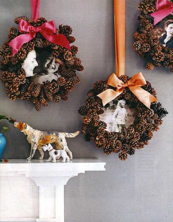 Ну и конечно из шишек получаться отличные праздничные веночки..