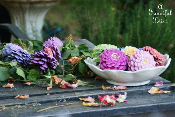 Немного краски, и ваши шишки расцветут, как самые настоящие цветы. Просто положите шишки в вазу и поставьте в гостиной. Гости будут в восторге от такого декора!