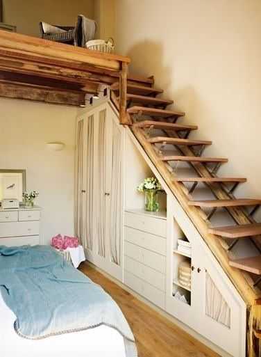 Раскройте полностью потенциал свой лестницы в сарае или гараже, если все правильно организовать, то такие полки под лестницей