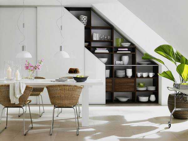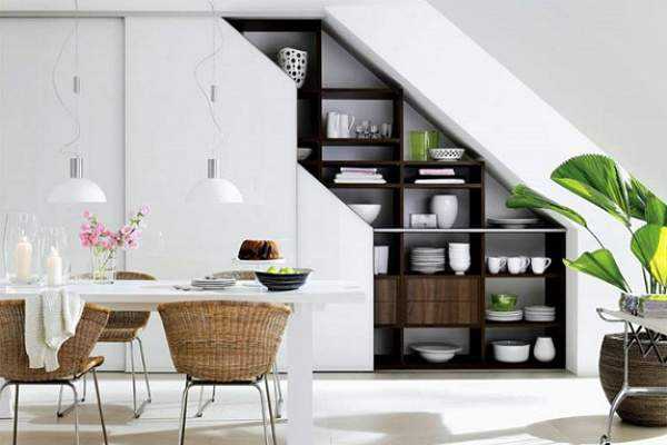 Предметы мебели, предназначенные под лестницу, можно использовать готовые, сделать самому или под заказ.