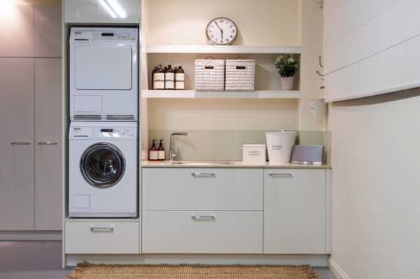 Где только стиральные машины не устанавливают: кухни, ванные, коридоры и даже туалеты. Все будет упираться в размер помещения. Но лучше всего – это ванная комната. И лучше место, где проще всего ее подключить к коммуникационным сетям. К тому же многие решают установкой шкафов закрытие проблемных участков, к примеру, трубной разводки: водопроводной и канализационной.