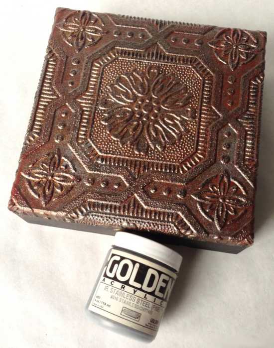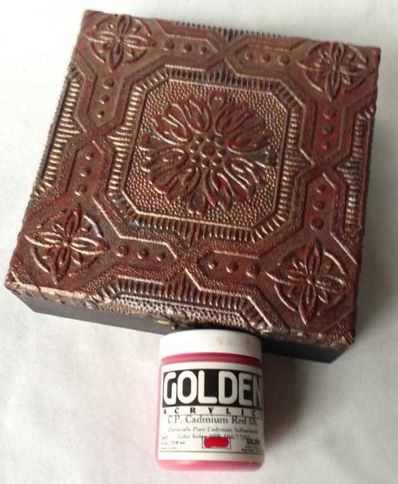 - Акриловые краски: чёрная, медная, красная, серебро, зелёная, тёмное золото.