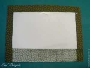Шкатулка из бамбуковой салфеткиПришить или приклеить к ним с обеих сторон декоративную ткань, оставив небольшие припуски на швы. Бамбуковую салфетку тоже можно декорировать тканью с той стороны, которая будет внутри шкатулки. Боковушки можно пришить или приклеить к салфетке, оставив некоторую часть свободной.