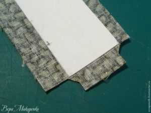 Закрываем срез картона, прямоугольником из ткани.