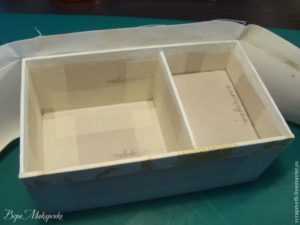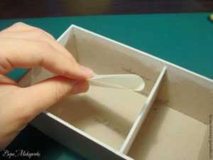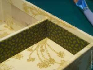 Дальше, нужно обклеить внутренне стороны вашей шкатулки