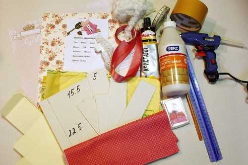 ножницы, картон, ткань для отделки;