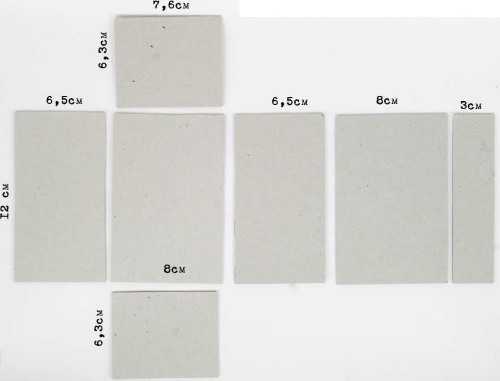 Далее вырежете из белого ватмана прямоугольник длиной, равной двум коротким стенкам и одной длинной. По высоте бумажная деталь равна высоте стенок вместе с толщиной дна.