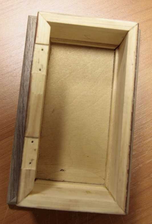 Стенки мы приклеиваем сверху на дно, не сбоку. Клей нужно наносить на детали по всей длине. Наносим большое количество клея, не жалеем, для того чтобы шкатулка была прочной.