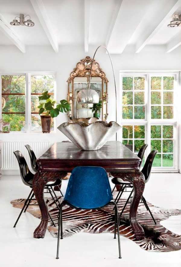 - шкурами леопардов и других экзотических кошек используют, чтобы разбавить холодный и строгий хай-тек, либо привнести колоритную нотку в этностиль;