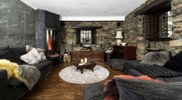 Ковер из меха — это очень эффектный элемент, и если он есть, то обычно вокруг него выстраивается мебель.