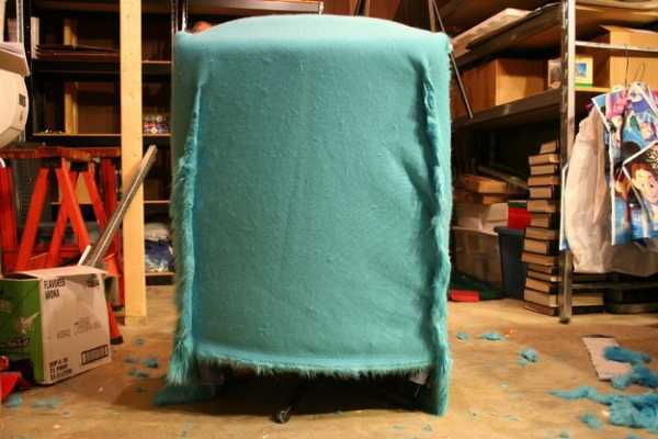 3. С креслом и другой многосоставной мебелью поступаем немного иначе. Сначала выньте сидение из кресла. После накиньте на кресло мех, отмерьте, зацепите булавками.