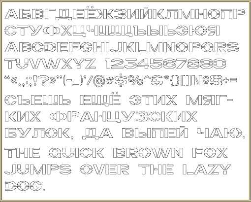 Если вы готовы серьезно заморочиться, параллельно подключив фантазию, для создания трафарета вполне можно использовать любой шрифт, представленный в стандартном наборе программы. Главное, когда он будет распечатан на бумаге, сделать перемычки — места, которые не будут вырезаться в буквах, ограниченных контуром.
